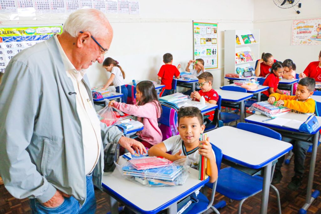 Os materiais estão sendo entregues diretamente às crianças e incluem itens utilizados no cotidiano escolar, como cadernos, lápis, borrachas, tesouras, colas, canetas e lápis de cor. Dependendo da etapa de ensino, os conjuntos também contam com materiais específicos, como massa de modelar, tinta guache, giz de cera, esquadros e transferidores, utilizados nas atividades pedagógicas em sala de aula.