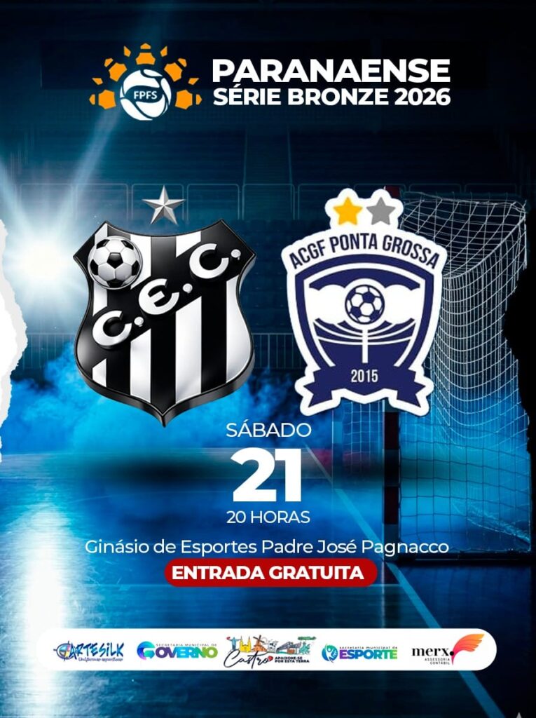 Caramuru busca segunda vitória em casa pela Série Bronze do Paranaense contra equipe de Ponta Grossa Depois de goleada na estreia, time conta com apoio da torcida para segunda partida Após uma estreia convincente, o Caramuru Futsal volta à quadra neste sábado (21), às 20 horas, no Ginásio de Esportes Padre José Pagnacco, em Castro, para mais um desafio pelo Campeonato Paranaense de Futsal – Série Bronze 2026. O adversário da vez é o ACGF Ponta Grossa, em partida com entrada gratuita.