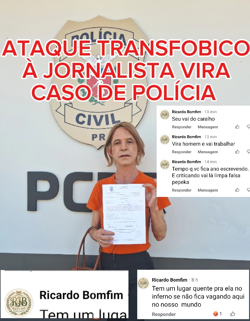 No início da noite de ontem (29/03) o indivíduo que se identifica como RICARDO BOMFIM, entrou em links do Portal de Notícias canallinguasolta.com, onde proferiu ataques transfóbicos e insultos contra a jornalista Mayka Wogue, inclusive sobre sua atuação como jornalista e sua orientação sexual. Com a repercussão e inúmeras denuncias sobre o ataque , a META, empresa que gerencia as redes sociais excluiu os comentários, que já haviam sido compartilhados por outros internautas. O fato acontece menos de um mês após outro ataque à jornalista Emanuelle Wisnievski, mostrando o errôneo pensamento de que a “Internet é terreno sem lei”. Mayka Wogue compareceu à Delegacia de Polícia Civil de Castro, onde registrou o Boletim de Ocorrência e anexou as provas do crime. Ao sair da delegacia Mayka Wogue se dirigiu aos estúdios do Estúdio e Fundação Titia Zélia Canal Língua Solta, onde se pronunciou sobre o ocorrido.