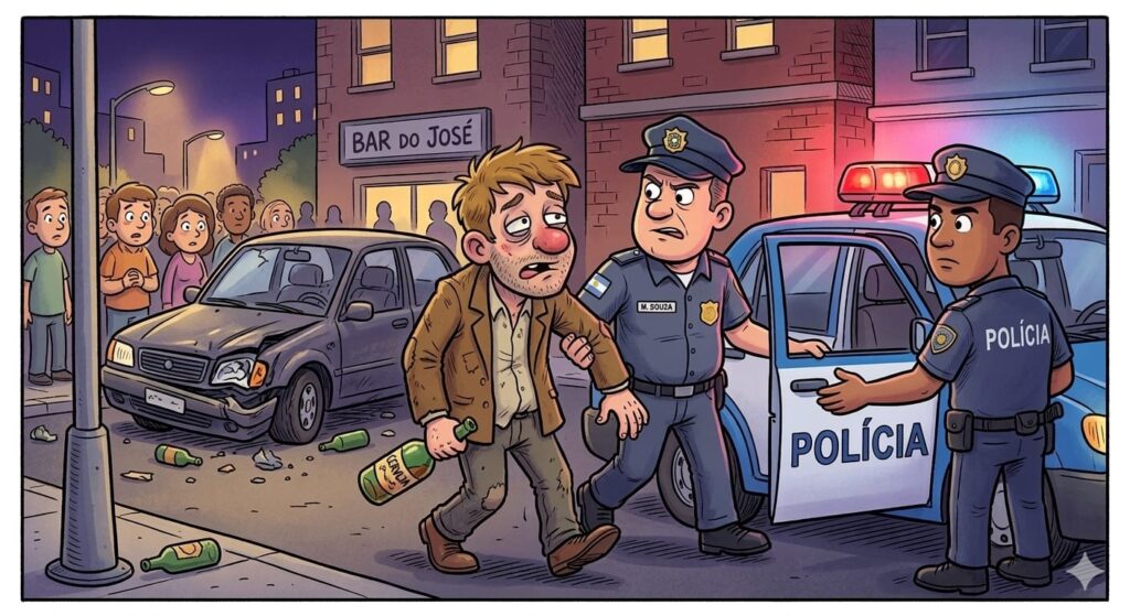 Um motorista foi preso pela Polícia Militar por embriaguez ao volante em Castro na madrugada deste sábado (7), após realizar manobras perigosas na região do Parque Lacustre, no Centro da cidade. O teste do etilômetro apontou 0,83 mg/L de álcool no organismo do condutor. De acordo com informações da Polícia Militar, a equipe realizava patrulhamento na região quando visualizou um veículo trafegando de forma irregular pela Rua Hernandes Antunes. O automóvel chamou a atenção dos policiais ao realizar arrancadas bruscas e provocar deslizamento de pneus na via pública, colocando em risco a segurança de outros motoristas e pedestres. Diante da suspeita de condução sob efeito de álcool, os policiais realizaram a abordagem ao veículo. Durante a fiscalização, foi constatado que o condutor, um homem de 31 anos, não possuía Carteira Nacional de Habilitação (CNH). Ao ser questionado pelos policiais, o motorista aceitou realizar o teste do etilômetro. O exame indicou a presença de 0,83 miligramas de álcool por litro de ar expelido, índice que configura crime de trânsito conforme previsto no Código de Trânsito Brasileiro. Diante do resultado, o motorista recebeu voz de prisão pelo crime de conduzir veículo automotor com capacidade psicomotora alterada em razão da influência de álcool. Ele foi informado de seus direitos constitucionais e encaminhado à Delegacia de Polícia Civil para os procedimentos legais.