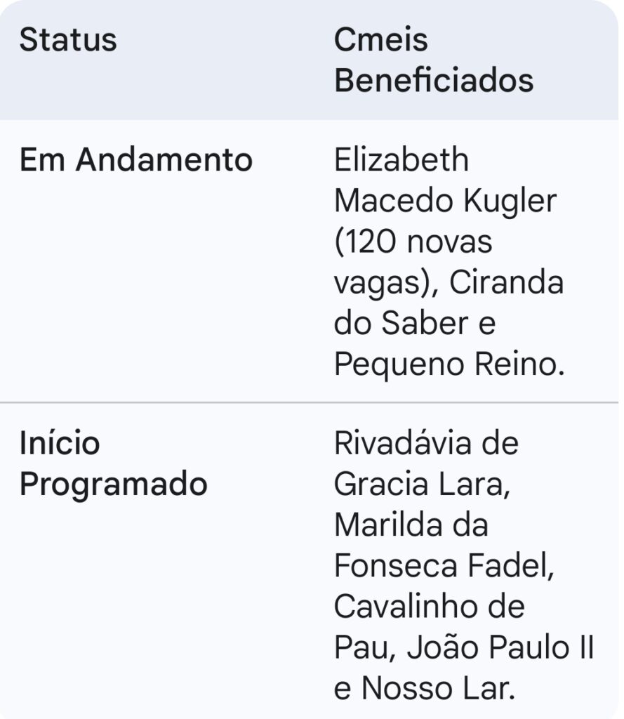 Queda na Fila: Em outubro de 2025, havia 738 crianças aguardando vaga. Atualmente, o número caiu para cerca de 420 (uma redução de quase 50%).