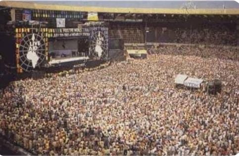 Só esse show durou cerca de vinte minutos. Vinte minutos bastaram para transformar um estádio inteiro em um coro humano. Mercury comandava aquela multidão como se estivesse regendo uma orquestra gigante. Palmas sincronizadas. Vozes respondendo. Um estádio inteiro cantando junto. Muita gente até hoje descreve aquele momento como uma das maiores apresentações ao vivo da história do rock. Só de escrever estou todo arrepiado. Credo! Que delícia. Só que o impacto daquele dia foi além do espetáculo. O Live Aid arrecadou mais de 125 milhões de dólares destinados ao combate da fome na Etiópia. Música, satélites, televisão e uma ideia teimosa de um músico indignado criaram um daqueles momentos raros em que a humanidade resolve agir junta. Eu gosto de imaginar essa cena. Um planeta inteiro olhando para televisões de tubo. Pessoas em Londres, Nova York, São Paulo, Tóquio, Buenos Aires… todo mundo vendo a mesma transmissão. Um dia em que a música virou notícia mundial. A história humana adora registrar guerras, conflitos e crises. O Live Aid registra outra coisa também. A capacidade que a gente tem de se mobilizar quando alguém acende a faísca certa.